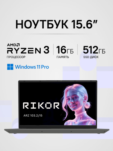Rikor ARZ 103.2 Ноутбук 15.6", AMD Ryzen 3 5425U, RAM 16 ГБ, SSD 512 ГБ, AMD Radeon, Windows Pro, (DE5C1910), серый, темно-серый, Русская раскладка