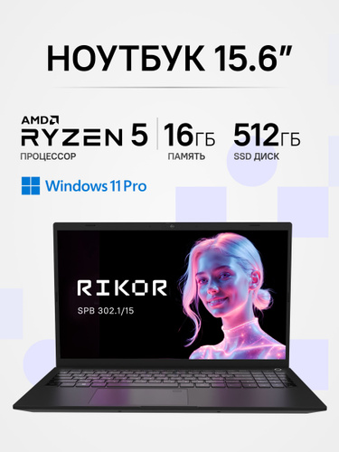 Rikor SPB 302.1 Ноутбук 15.6", AMD Ryzen 5 6600U, RAM 16 ГБ, SSD 512 ГБ, AMD Radeon 660M, Windows Pro, (D3DAD45C), черный, Русская раскладка