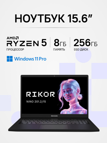 Rikor NINO 201.2/15/5500U/8Gb/256Gb/Win11Pro Ноутбук 15.6", AMD Ryzen 5 5500U, RAM 8 ГБ, SSD 256 ГБ, AMD Radeon RX Vega 7, Windows Pro, (C383EBDA), черный, Русская раскладка