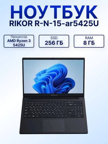 Rikor Ноутбук 15.6", AMD Ryzen 3 5425U, RAM 8 ГБ, SSD 256 ГБ, AMD Radeon Vega 6, Windows Pro, черный, Русская раскладка