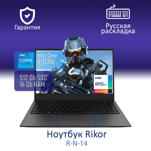 Rikor R-N-14 Ноутбук 14", Intel Core i5-1235U, RAM 16 ГБ, SSD 512 ГБ, Intel Iris Xe Graphics, Без системы, (SPB RN 300/14 IC1235U), черный, Русская раскладка