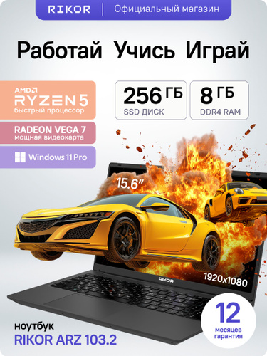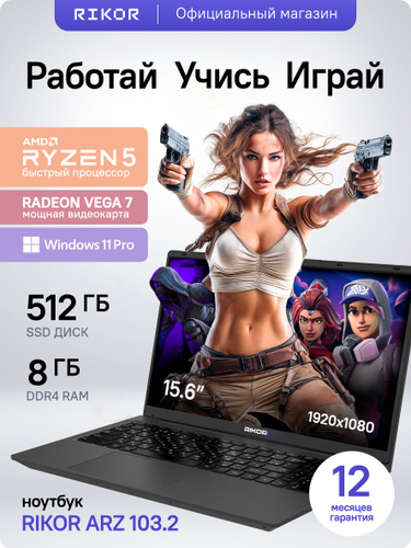 Rikor ARZ 103.2 Ноутбук 15.6", AMD Ryzen 3 5425U, RAM 8 ГБ, SSD 512 ГБ, AMD Radeon, Windows Pro, (9866AB13), темно-серый, Русская раскладка