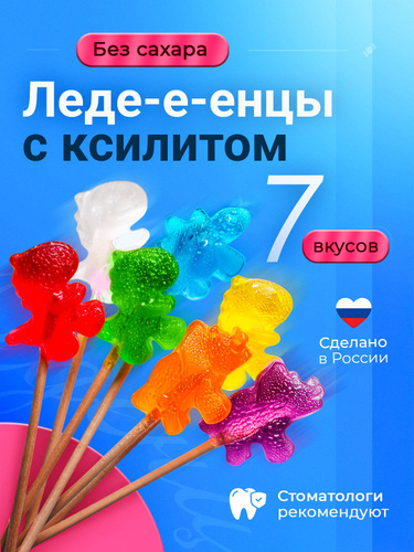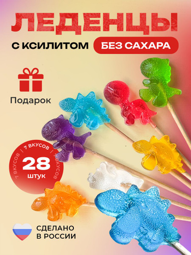 Натуральные детские леденцы без сахара на палочке с ксилитом, полезный чупа чупс - Дино 7 шт