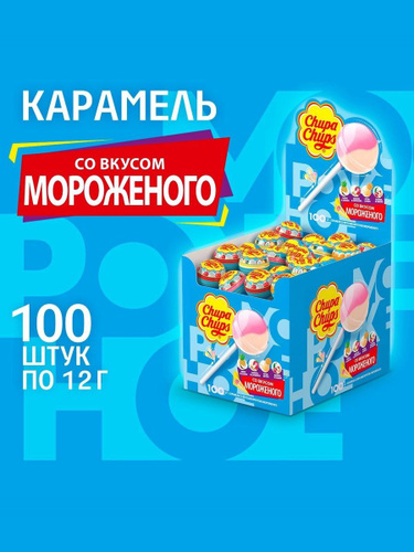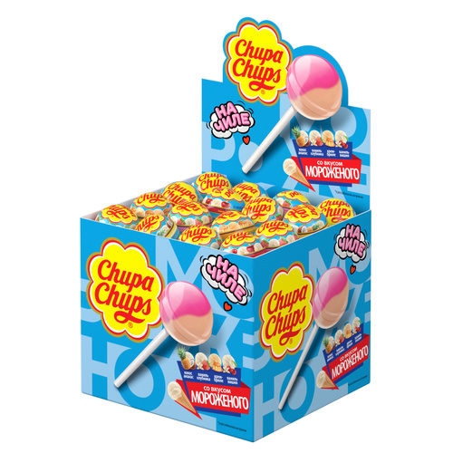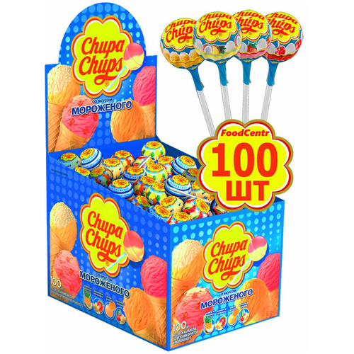 Карамель Chupa Chups со вкусом мороженого, 100 штук по 12г