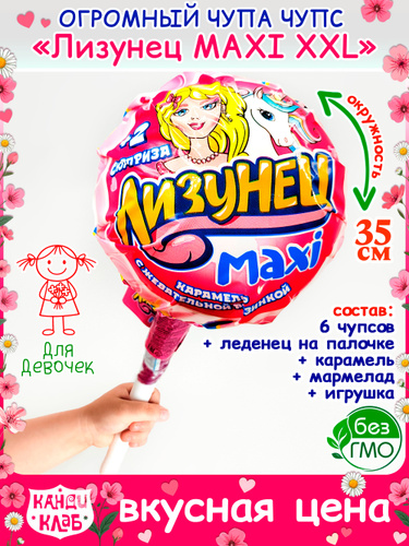Набор ОГРОМНЫЙ Чупа - Чупс Лизунец MAXI Макси XXL большой для ДЕВОЧЕК карамель леденцовая, взрывная + подарок (125гр). Мармелад жевательный + игрушка. Конфеты + леденцы на день рождения, Новый год