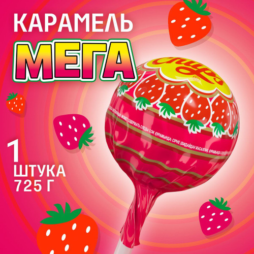 Карамель Chupa Chups Мега, подарок, клубничный вкус, большая порция 725 грамм