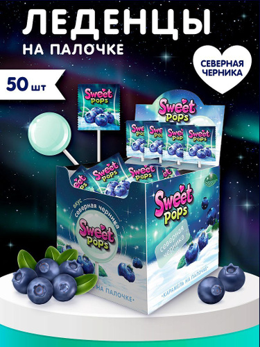 Леденцы на палочке северная черника, 10 г., 50шт.