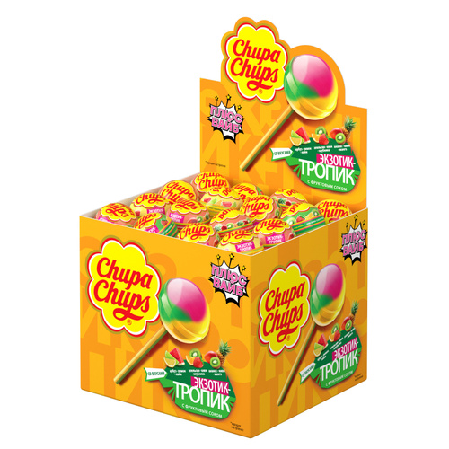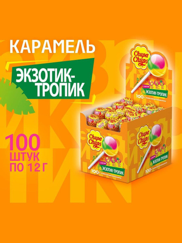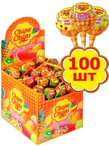 Карамель Chupa Chups Экзотик-Тропик, ассорти вкусов,100 штук по 12 грамм