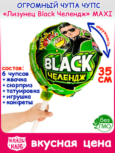 Набор ОГРОМНЫЙ Чупа Чупс Лизунец MAXI Макси BLACK ЧЕЛЕНДЖ XXL большой (112гр) конфеты, карамель леденцовая, жевательная резинка, мармелад Канди Клаб. Леденцы, жвачка + игрушка в подарок на Новый год