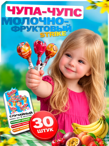 Чупа чупс Страйк Молочно-фруктовый вкус 30 шт