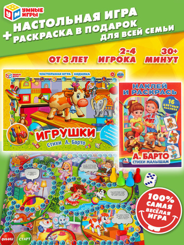 Настольная игра в комплекте с раскраской Стихи Агния Барто Умные игры