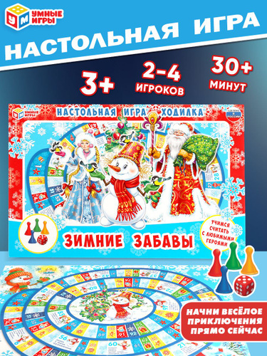 Настольная игра - ходилка Зимние забавы бродилка для детей от 3 лет, 2-4 игрока Умные игры