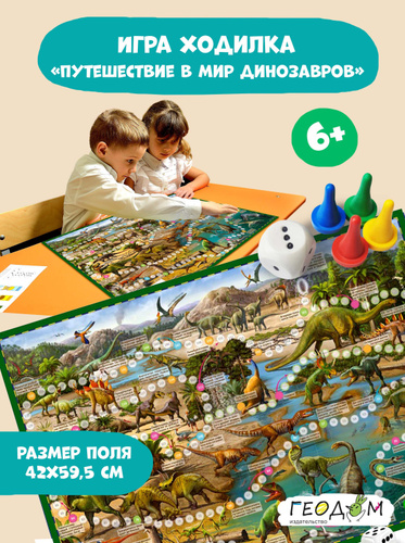 ГеоДом. Игра-ходилка "Путешествие в мир динозавров" с фишками /200