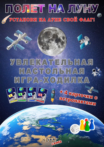 ПОЛЕТ НА ЛУНУ Настольная игра-ходилка 840х310 мм. Нелли игры (Nelly Games)