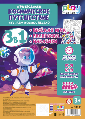 Настольная игра ходилка для детей Космическое путешествие, раскраска и наклейки