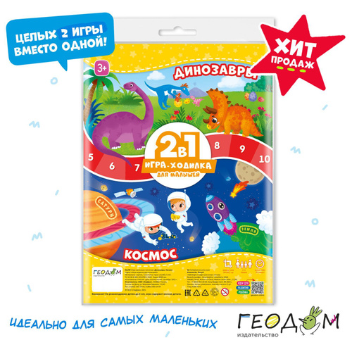 Геодом Игра-ходилка с фишками для малышей 2в1 Динозавры и Космос. 42х29,7 см