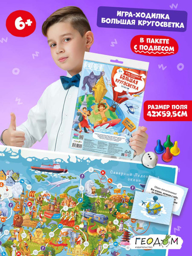 Игра-ходилка с карточками. Большая кругосветка. 59,5х42 см