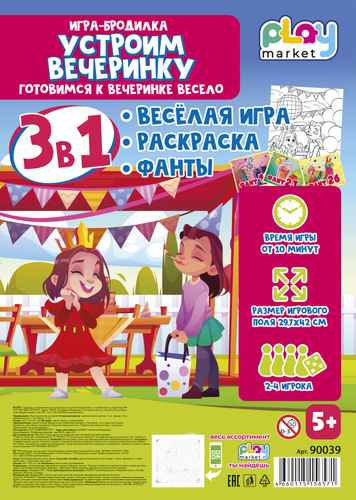 Настольная игра ходилка для детей Устроим вечеринку, раскраска и фанты
