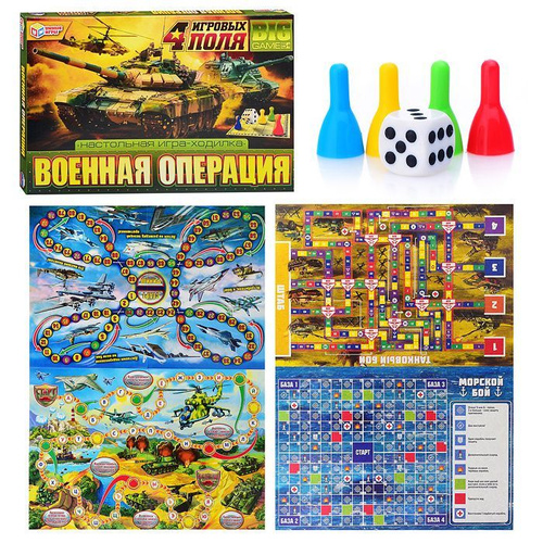 Настольная развлекательная игра - ходилка для детей 4 в 1 Военная операция. 4680107994134 Умка