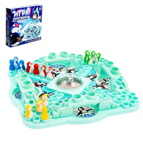 Настольная 3D игра-ходилка "Игра пингвинов" на везение, объемное поле с фигурками и кубиком