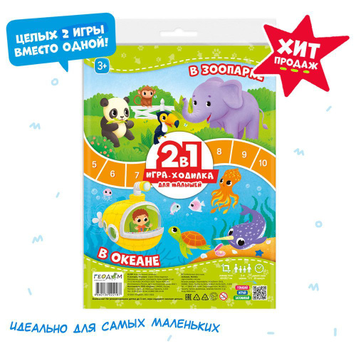 Игра-ходилка с фишками для малышей 2в1. В зоопарке+В океане. 42х29,7 см. ГЕОДОМ