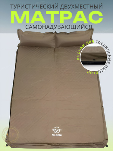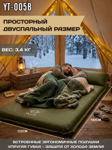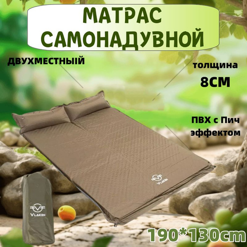 Коврик-матрас туристический самонадувающийся двухместный в палатку 190х130х7 см / с чехлом / Vlaken YT-005B