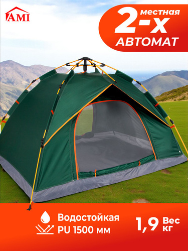 AMI MEBEL Палатка туристическая 2 местная автоматическая кемпинговая, пляжная от солнца, шатер с москитной сеткой, спорт инвентарь для кемпинга похода и туризма, цвет зеленый