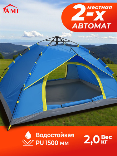 AMI MEBEL Палатка туристическая 2 местная автоматическая кемпинговая, пляжная от солнца, шатер с москитной сеткой, спорт инвентарь для кемпинга похода и туризма, цвет голубой