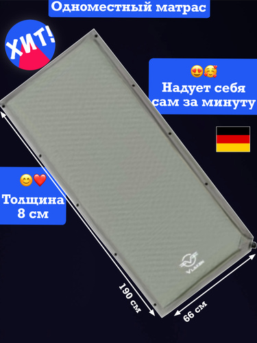 Коврик-матрас туристический самонадувающийся в палатку 192х63x3 см / чехол