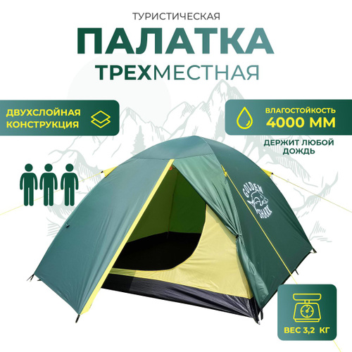 Кемпинговая палатка туристическая 3-х местная Golden Shark HUTTE 3