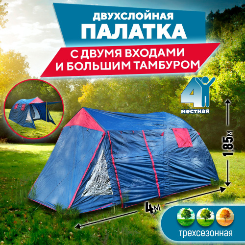 Палатка туристическая 4 местная с тамбуром двухслойная 1704