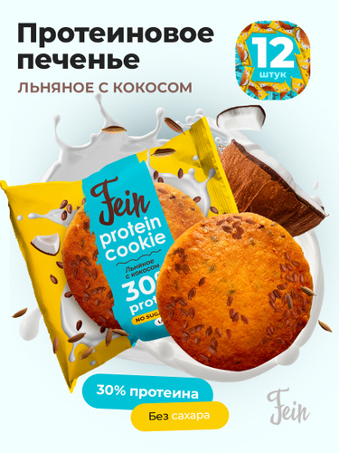 Спортивное питание протеиновое печенье без сахара "Льняное с кокосом" неглазированное диетическое 12 шт по 40 г