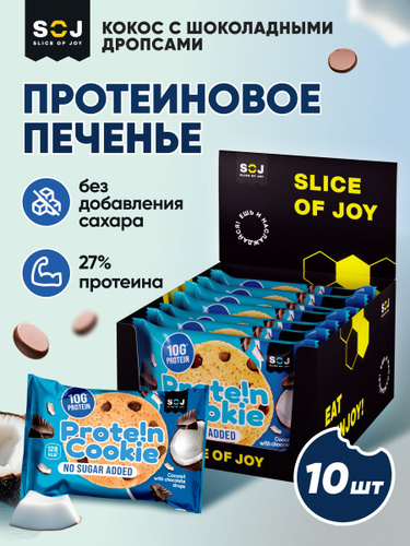 SOJ Протеиновое печенье без сахара со вкусом кокос с кусочками шоколада, 10шт