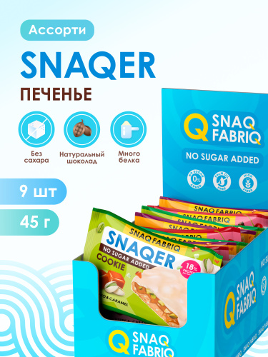 SNAQ FABRIQ Протеиновое печенье в шоколаде SNAQER "Ассорти", 9 шт х 45 г