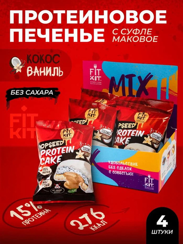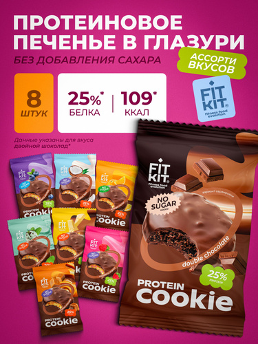 FIT KIT Протеиновое печенье без сахара ассорти 8шт Х 40г