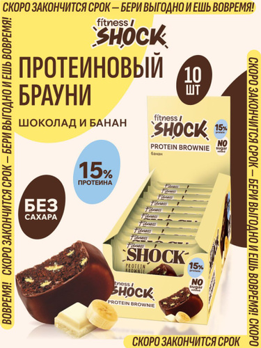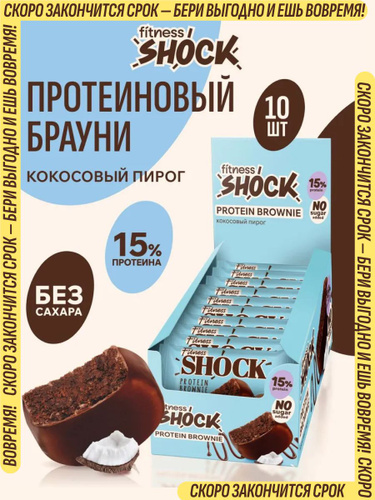 FitnesShock Протеиновое печенье без сахара Брауни "Кокосовый пирог", 10 шт. Срок годности до 2026-03-07