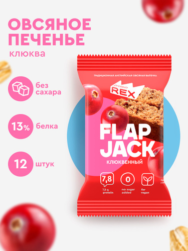 Протеиновое печенье спортивное без сахара ProteinRex Flapjack Клюква, 12шт х 60 г, овсяное печенье