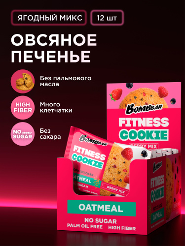 Bombbar Фитнес печенье овсяное без сахара "Ягодный Микс", 12шт х 40г