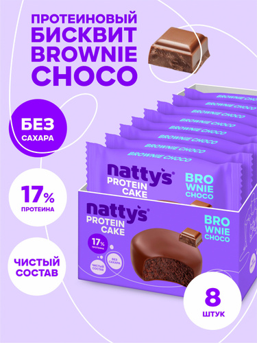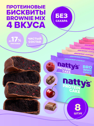 Nattys Протеиновое печенье Брауни без сахара Шоколад, 8 шт