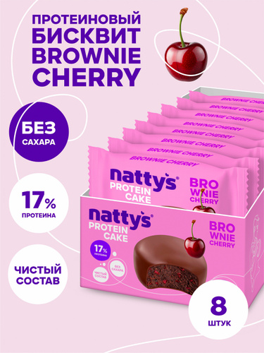 Nattys Протеиновое печенье Брауни без сахара Вишня, 8 шт