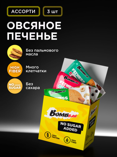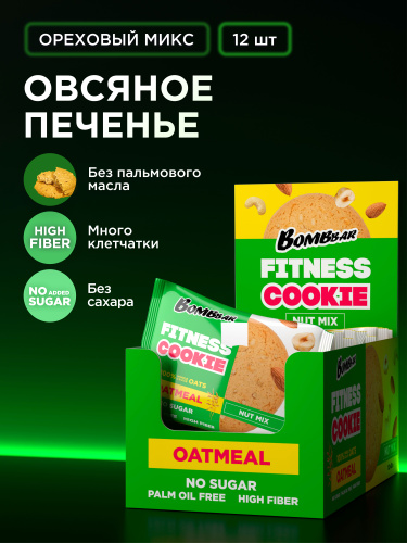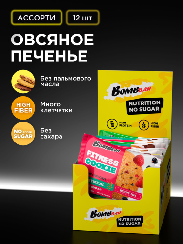 Bombbar Fitness Овсяное фитнес печенье без сахара Ассорти, 12шт х 40г