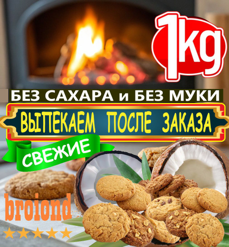 Печенье без сахара овсяное, с кокосовой стружкой, низкокалорийное, диетическое, натуральный пп продукт от broiond