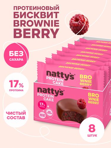 Nattys Протеиновое печенье Брауни без сахара Малина, 8 шт