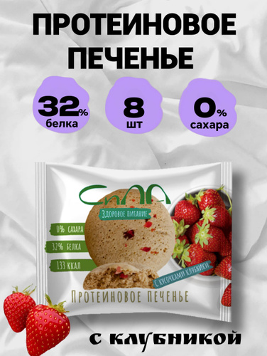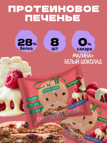 Протеиновое печенье без сахара Сила Малина и белый шоколад