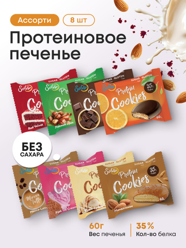 Solvie Протеиновое печенье без сахара Ассорти 8шт, 8 вкусов, 35% белка