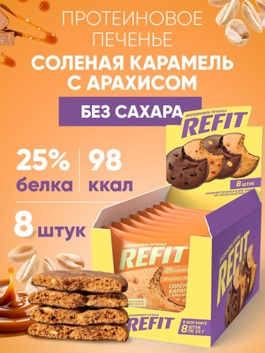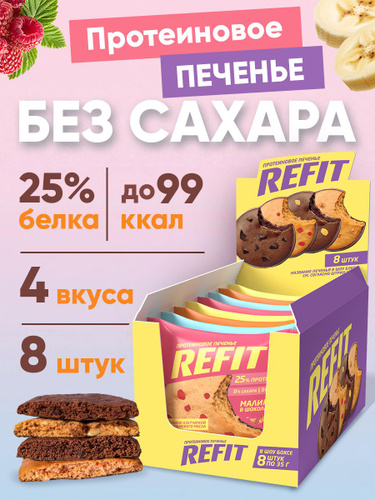 Протеиновое печенье REFIT без сахара, 25% белка, 4 вкуса, низкокалорийное печенье спортивное/ 8шт