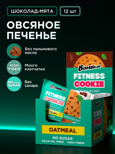 Bombbar Fitness Печенье овсяное без сахара "Шоколад - Мята", 12шт х 40г