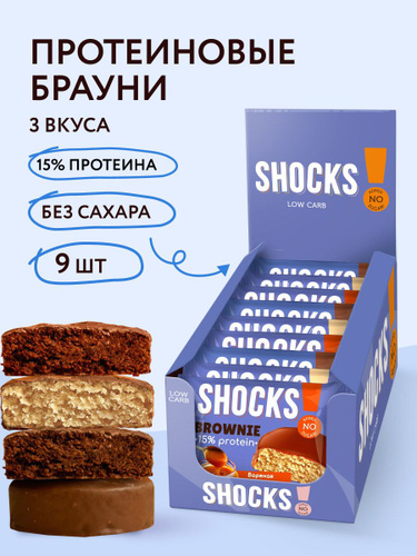 SHOCKS! Протеиновое печенье Брауни без сахара ассорти "Choco", 9 шт