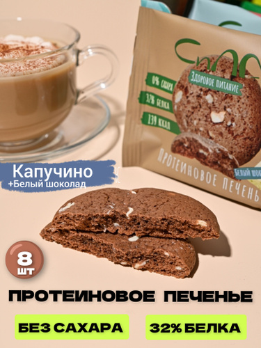 Протеиновое печенье без сахара Сила Белый шоколад и Капучино