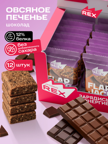 Протеиновое печенье спортивное без сахара ProteinRex Flapjack Шоколад, 12шт х 60 г, овсяное печенье